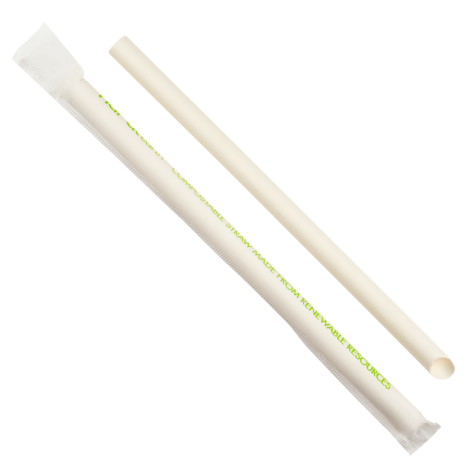 PRODUCT: Karat Earth Paper Colossal 9" Straw | Wrapped | White, Diagonal Cut